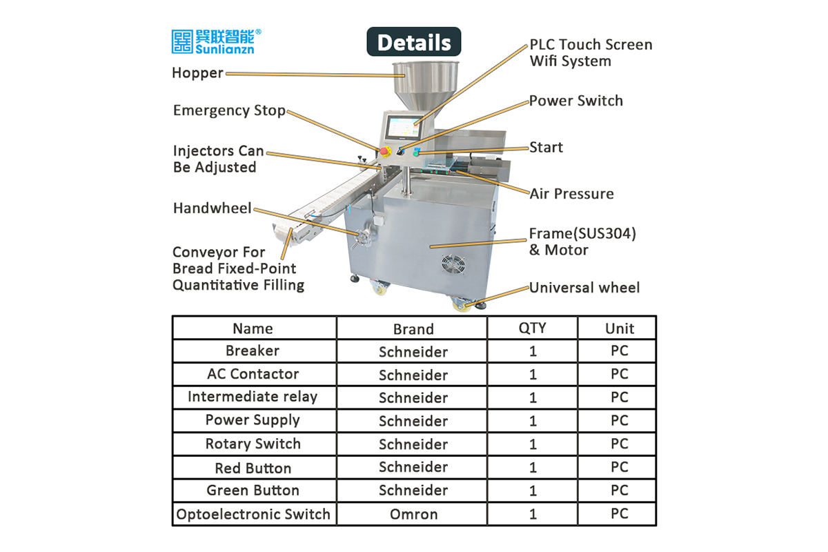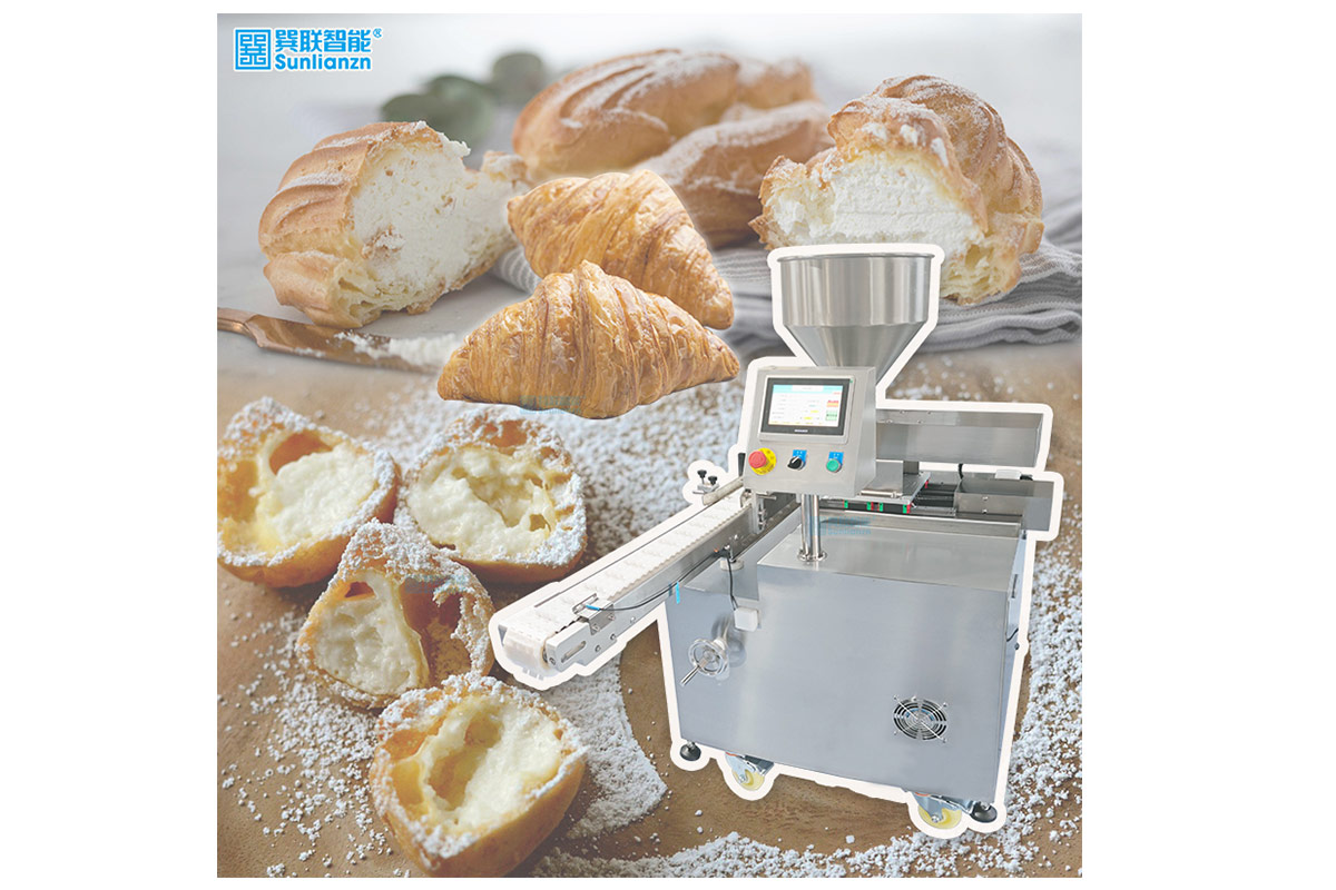 Jam Cream side injection machine is easy to maintain and clean, accurate & fast. Suitable for cakes, puffs,croissant, bread and other products with side core filling requirements.